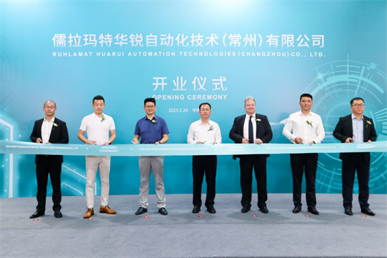 江苏创新网讯 5月29日,钟楼区举行儒拉玛特华锐自动化技术(常州)有限公司开业仪式。区长李超鲲,区委常委、经开区党工委书记钱云杰与儒拉玛特相关负责人一同为公司开业剪彩。