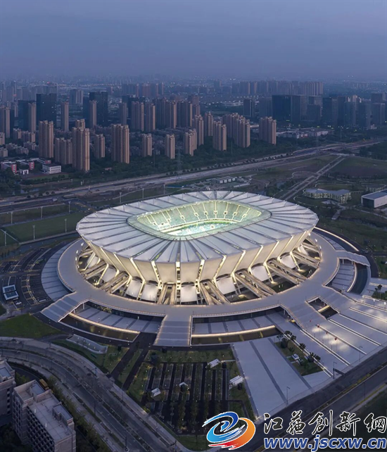 无锡是这三家中唯一进入八强的队伍,江阴市体育中心于2009年10月建成,由本土的江阴市建筑设计研究院设计,采用钢桁架加前后索的动态体系,其顶棚采用梭形膜结构,因造型获称“芙蓉花”。江阴体育中心更注重营造亲切感与在地性,如同盛开的芙蓉花,与市民生活紧密相连。