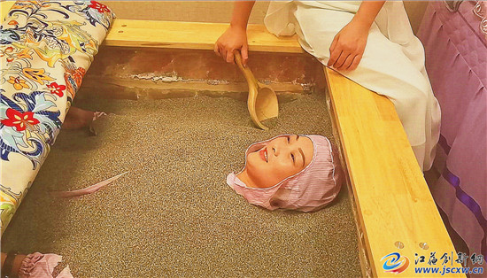 沙疗,又称埋沙疗法,诞生于13世纪初,因沙子中富含磁铁矿物质,将身体病痛部位埋入热沙中,利用压力、磁力的综合作用,可产生通筋活络、祛湿散寒、活血化瘀和舒缓疲劳的作用。近年来,不少体质虚寒或患有关节疾病的人喜欢上了沙疗。可是在句容,“沙疗”在市场上仍然处于较为空缺的状态。