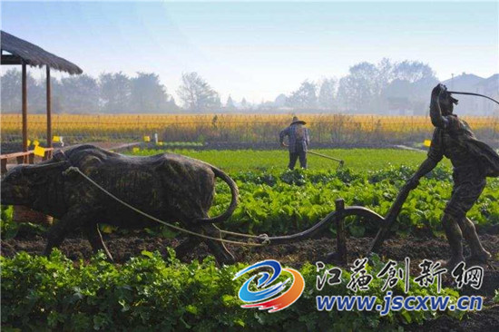 “大佛堂村一直以来都有村民喜好花草盆景的传统,溧城镇根据村里的特色,与村民商议,决定依照当地的传统,将大佛堂村建成一个盆景特色村。”溧阳市溧城镇田园建设办相关负责人介绍说,村庄通过“轻介入”“微改造”等方式,灵活运用砖瓦、木柴、农具等废弃物或老物件,让闲置房屋、院墙花坛等散发出独特乡土气息;鼓励木匠、泥瓦匠等乡土工匠参与村庄建设,用本地传统营建手法就地取材,石片、竹子、青砖等乡土材料被巧妙组合装饰在村落景观中,既美化了环境,又保持了浓郁的乡土氛围。
