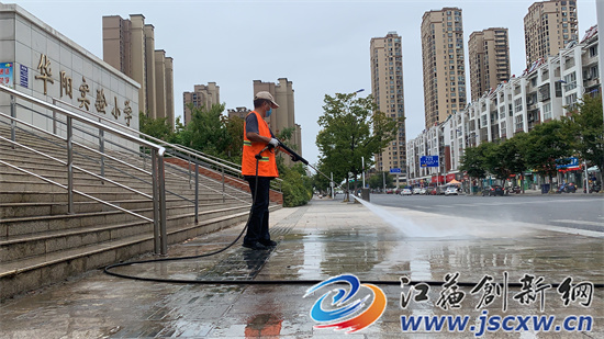 合理做好冲洗和垃圾收运。通过“人机结合”的方式,对校园周边干道、人行道、学校门口进行了冲洗作业,加强对学校周边垃圾桶、果皮箱的清洁,确保环卫设施设备完好、干净整洁无异味;此外,环卫处主动对接学校各相关负责人,查看其附近的垃圾收运点运行情况,及时清运学校周边生活垃圾,确保果皮箱、垃圾箱干净整洁无满溢。