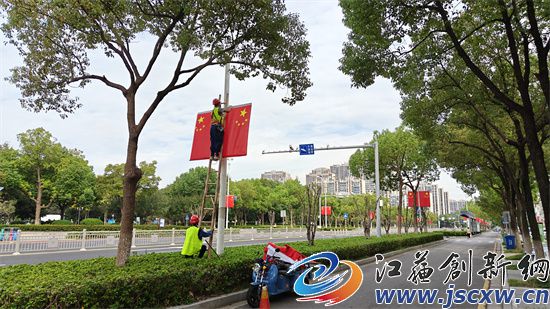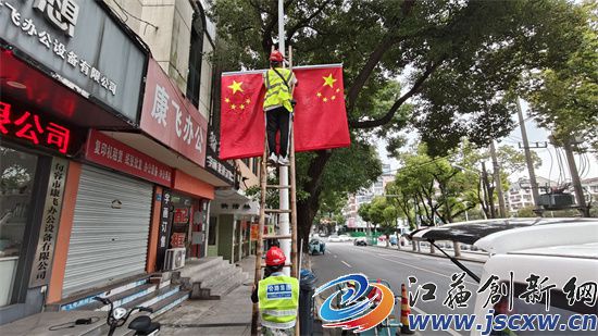 江苏创新网讯 为热烈庆祝中华人民共和国成立75周年,连日来,句容市城市管理局在市区多条主要干道悬挂国旗,预计29日前悬挂完毕,让“中国红”闪耀街头巷尾。