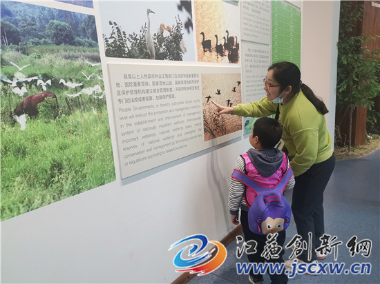 在公园内的湿地科普展馆内,不仅图文并茂地展示了湿地的动植物,还陈列着栩栩如生的鸟类标本,耳边是老师细致有趣的讲解,眼前是丰富生动的图片和标本,小朋友不禁张大嘴巴,听得专注,看得入迷。自由活动时,小朋友轮流使用望远镜观察远方树梢上的鸟雀,争论鸟类的品种,还有不少小朋友坐在草地和石头边画画,活动结束后不忘自发清理垃圾纸屑,爱护赤山湖的环境。