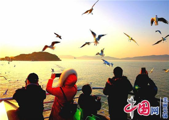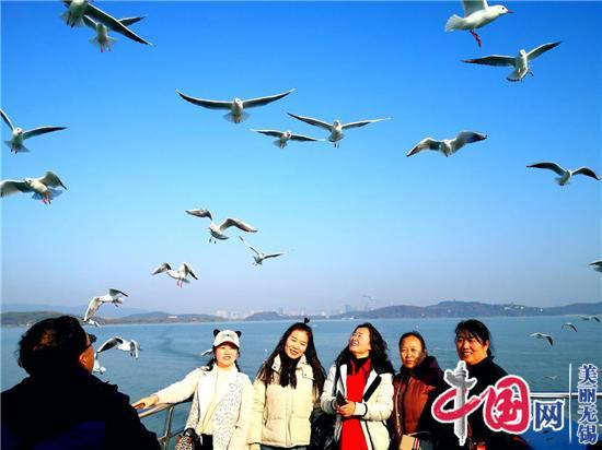 江苏创新网讯:入冬以来,随着气温的下降,在太湖无锡鼋头渚到三山岛的广阔湖面上, 只要有游船开动,就有上千只红嘴鸥跟着船尾的浪花盘旋、俯冲、捕食,场面壮观,引得游人纷纷拍照留念。