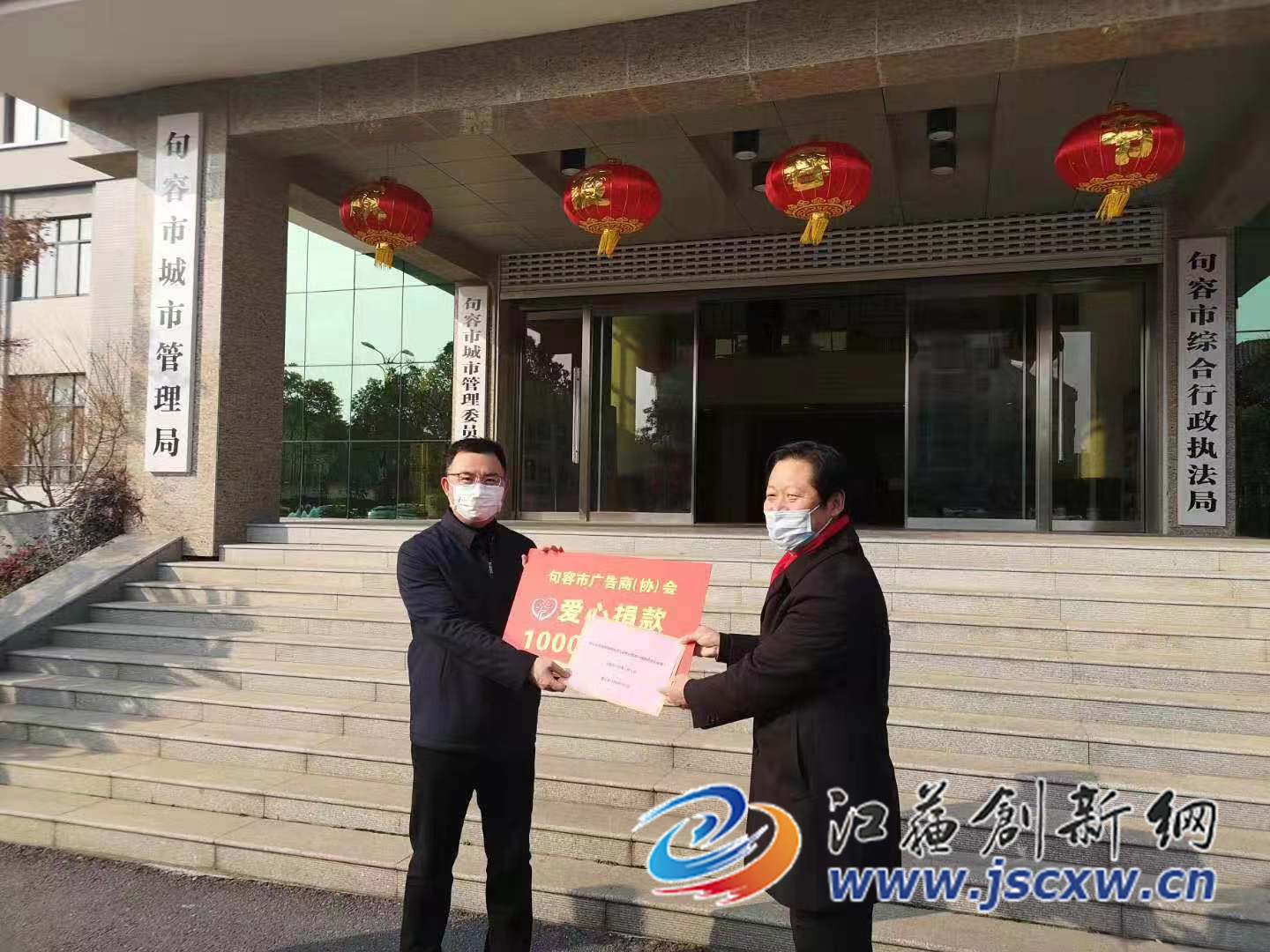 2月5日下午,句容市广告商(协)会在市城管局门口为市环卫处捐赠了1万元现金,用于防疫一线环卫工人购买手套、口罩。(商)协会会长刘学武说:“捐赠防护物资资金给环卫工人,是大家在疫情面前应有的社会责任,希望以这些爱心之举为句容疫情防控尽一点绵薄之力。也希望更多的爱心人士能够参与进来,共同守护句容人民的生命健康安全。”