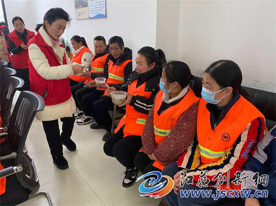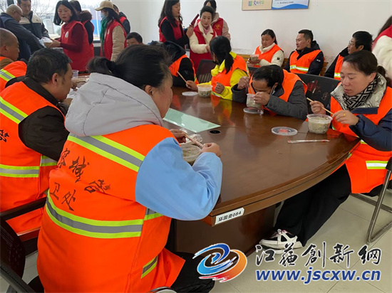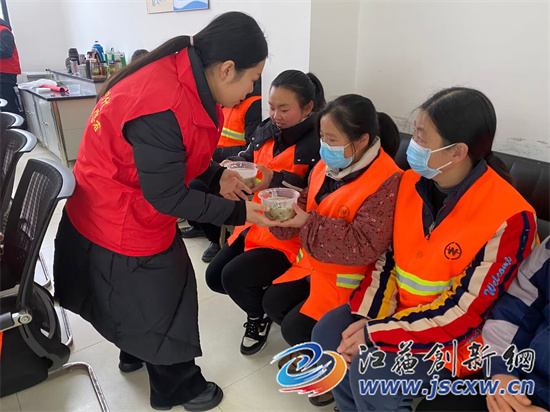 江苏创新网讯(图文/许格丽)寒冬有爱、雨雪传情。农历十二月初八,是中国传统节日“腊八节”。在句容城管环卫处城北转运中心,爱心企业将精心熬制的百余份腊八粥送到了环卫工人手中,为默默奉献、坚守岗位的环卫工人献上一份冬日的温暖。