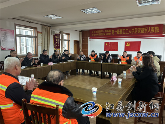 江苏创新网讯(图文/许格丽)在新春佳节来临之际,为弘扬拥军光荣传统,关心关爱退役军人,2月6日,句容市城管局联合句容市退役军人事务局、句容市关爱退役军人协会开展“向一线环卫工人中的退役军人致敬”活动,送上了军大衣、羽绒服、棉手套和保温杯,并向他们致以诚挚的问候和新春的祝福。