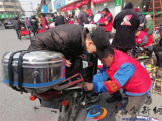 据学雷锋小组领队之一、镇江宝堰市监分局负责人朱江介绍,学雷锋活动小组从1983年成立开始到今年为止,已整整坚持了41年之久,虽然换了一批又一批学雷锋志愿者,但这个活动每年都在坚持,41年来从未间断,为老百姓服务的内容都是修鞋、修家电、理发、识别假冒伪劣产品、疾病预防,后来又增加了防止电信炸骗等等,虽然都是一件件小事,但是能坚持这么多年真的是很不容易的。其中,去年才参加学雷锋活动的电动车维修业主陈辉,他在前一天得知第二天学雷锋活动,就提前在自己家门店免费给群众维修,来不及修好还告诉群众第二天到学雷锋现场来继续找他给他们服务。3月1日这天上午,陈辉与另一个维修师傅联手,给群众维修十多辆大小电动车,一分没有收还给群众更换了许多零件,另一个搭档维修的师傅叫柏卫平,本来柏卫平是修自行车的,现在自行车渐渐淡出了市场,柏卫平在现场没有自行车修,就索性与陈辉搭档一起修起了电动车。