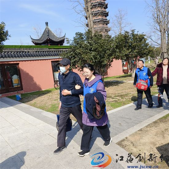 江苏创新网讯(图文/ 毕庆元)3月3日下午,天气格外晴朗。适值第61个全国学雷锋纪念日来临前夕,句容阳光助盲志愿服务队一行,为满足一部分身在句容,却从来没去过葛仙公园,更没参观过公园内景点盲人的需求,特开展“手牵手”助盲志愿活动,用实际行动践行雷锋精神。