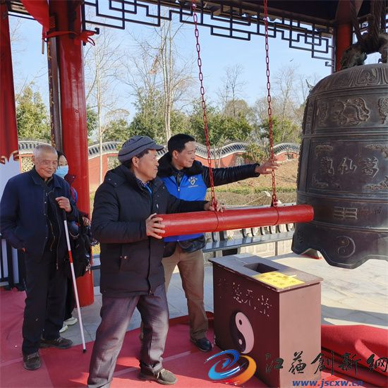 游园活动中,这些从来没到过葛仙湖公园的盲人,当听到景点精彩的典故介绍时,都兴奋不已,甚至很激动。在大圣塔下,虽然他们眼睛看不见大圣塔的模样,但他们用手去摸一摸大红门,摸一摸雕塑,心里十分宽慰。在葛仙观大钟面前,盲人们和志愿者们争相撞响大钟,为2024年新年祈福。当阵阵钟声响起,他们的脸上露出开心的笑容。在葛仙观、华阳书院,当张老师介绍句容历史名人葛洪和状元李春芳的传奇故事,以及政府花2亿多元,投资兴建大型音乐喷泉水景灯光秀,成为家乡别具一格的景致时,这些盲人由衷感慨:句容道教文化底蕴深厚,名人荟萃,经济发达,景色优美,真的为家乡骄傲和自豪!活动前后持续近4个小时。结束前,志愿者和盲人们齐声大合唱歌曲“爱的奉献”,再次把游园活动推向了高潮。