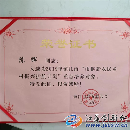 身为一名拥有专业知识的大学生,陈辉深知知识的重要性,因此她常常在工作之余,抓住时机从书籍中汲取知识,丰富理论基础。农场发展趋于稳定,陈辉也在试图寻求更多的突破发展,她和丈夫经常去学习和走访更多优秀的项目,也会定期去参与培训交流,学习更多的经验提升自身能力。每一年她都会参加农广校组织的培训,每年3-4次,每年农业农村局食品安全等其他专项培训5-6次。而且她还会自费去福建、扬州、泰州等地,学习新的种植栽培与病虫害防治技术。每一次的学习,陈辉都会收获新的知识,接收前沿种植技术。在福建一家农场参观时,受到启发,学习了露天种植小西红柿、防病和用药等知识,回来后,便开始扩种小西红柿。陈辉参与农业农村局质量检测中心组织去泰州学习绿色防控,主要内容是防止农药过量,保证食品安全。通过本次的学习,陈辉回到家后,家里所有农药都由她自己采购,然后自己进行科学的配比后,再让工作人员进行喷洒。她每次学到新知识新技术后,都会为周边百姓面对面讲授,还将自己在农场经营中的心得体会与乡亲们分享。创业十年,陈辉和她的天辉农场获得的荣誉摆满了一个柜子。2018年陈辉获得由句容市农业委员会与共青团句容市委员会联合颁发的“‘百优’新型职业农民称号”;2019年陈辉获得了句容市就业创业作领导小组颁发的“最美创业者”的称号。这些荣誉也在激励鞭策着陈辉不断前行。
