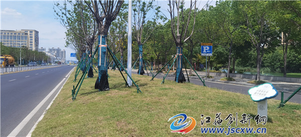 江苏创新网讯 近日,不少市民行走在句容城区的主次干道上时,都可以看到整齐划一的树根处,园林绿化工人正将一只只黑色的塑料袋拴在一棵棵行道树根处,随后用水枪向塑料袋内注入液体,不一会儿塑料袋就鼓了起来。然后,工作人员将塑料袋尾部用针戳一个小洞,水流顺着塑料袋自然的一滴滴渗入土壤。