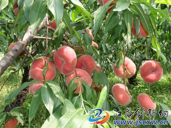 “玉霞蟠桃”由江苏省农业科学院果树研究所育出,果皮底色绿白色,果面着暗红色;果肉白色,硬溶质,风味甜,可溶性固形物含量11.5 ~ 14.8%,果心小,品质优良。