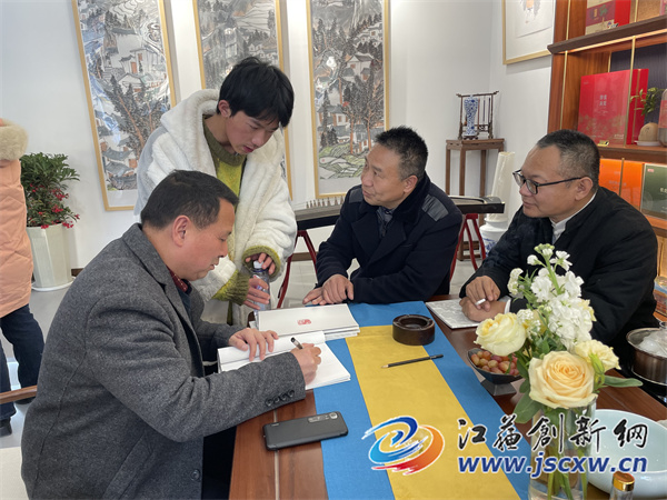 江苏创新网讯 早春二月,春意盎然,茶香四溢,欢声滿堂。2月25日下午3时,来自淮安、沭阳、泗阳三地的作家、文艺评论家、企业家,书画爱好者相聚在泗阳县雅集叙,共赴一场与春天的约会,品茶欣赏毕传国的文人画作品。