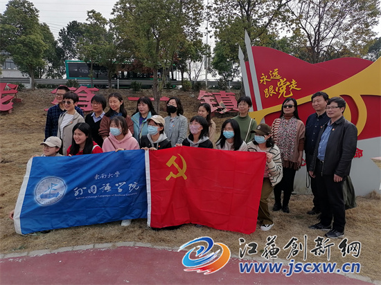 东南大学外国语学院一行20多名老师及教授专程来到镇江宝堰镇进行实地走访,他们参观市级非遗米酒生产基地,感受非遗米酒文化。随后到宝堰镇退役军人主题公园,领略江苏最美乡村健身公园、镇江市最美十佳网红打卡地风采。最后,他们走进宝堰烈士陵园,向长眠在此的26名革命烈士进行缅怀。