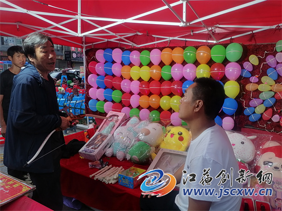 江苏创新网讯(图文/李国平 徐国联)5月4日(农历三月十五)是镇江南乡宝堰镇一年一度的庙会文化盛会,这天上午,虽然天空阴沉,有时还飘着雨,但是宝堰镇世纪大道(镇东路)、镇阳路上的集镇主干道两边摆满了琳琅满目的各种商品,至当天中午时分,来赶庙会的群众不下于10万人。