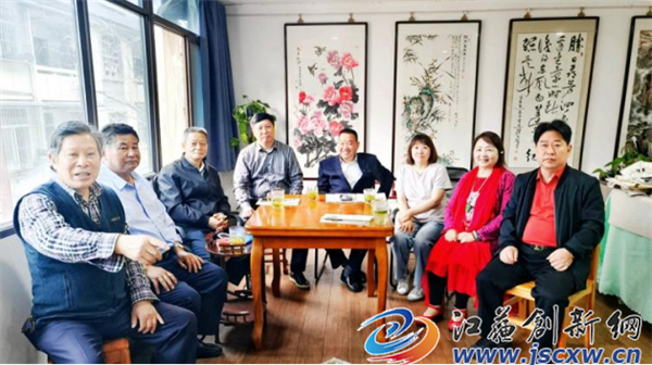 上午南京市义乌商会叶关河会长一行7人走访了江南诗画院,与诗画院兰兰院长、兰飞艺术研究院陆正祥副院长等进行了书画观摩和座谈。随同叶会长一同走访的有:南京市义乌商会执行会长张晓帆、副会长李鹏程、吴伟洪,顾问陆考敏、常务理事朱旭先、毛新民等。