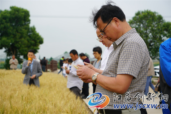 江苏创新网讯 (图文/王敬根 陈琛 杨洽)“我们选择镇麦15,就是看中了它的优质、高产、早熟的特点,给我们带来实实在在的收益......”金色田野,风吹麦浪,夏粮丰收在望。5月17日下午,在镇江农谷基地“镇麦”系列品种展示田间,现场观摩的镇江地区小麦种植大户们,同省内外小麦技术专家、育种公司负责人一起,参观“镇麦”系列品种田间生长情况,分享各自种植心得。