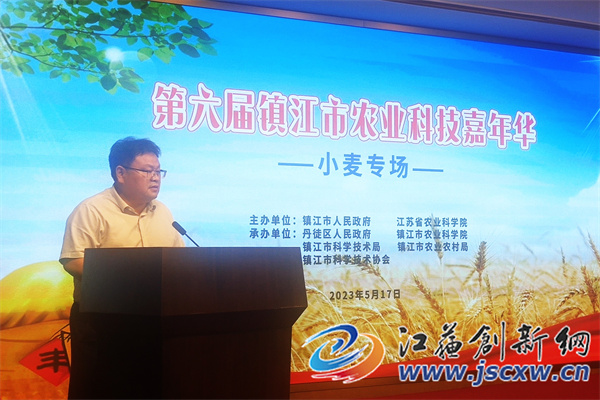为加快推进小麦产业高质量发展,助力乡村振兴战略实施和镇江“高端、高新、高效”农业发展。5月17日,由镇江市人民政府、江苏省农科院主办,镇江市农科院等数家单位联合承办的“第六届镇江市农业科技嘉年华小麦专场活动”在镇江市丹徒区世业洲润扬大桥酒店隆重举行。镇江市政府党组成员黄万荣、江苏省农科院副院长黄俊出席活动并致辞,省内高校院所专家、镇江市农科院、科技局、农业农村局、市科协以及丹徒区有关专家、领导,知名种业企业、镇江市及周边小麦生产经营主体代表等100多人参加了活动。