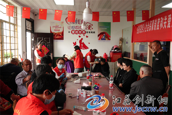 江苏创新网讯 (图文/魏玉荣 李永明)5月21号是全国助残日,在第33个“全国助残日”来临之际,句容市青春志愿服务队在队长胡姐组织带领下受邀参加天王镇残联办在残疾人之家为残障人士开展的助残关爱系列活动,会场上志愿者们同现场工作人员热情的开展了理发、量血压、亲情陪护等丰富多彩的志愿服务,肢残周敏夫妻激动的说太感谢你们青春队员的一次又次为我们残疾人送温暖,会场中氛围温馨。