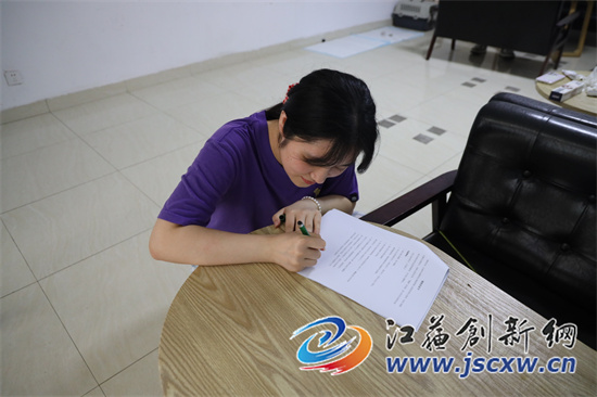 图为社区居民在北阳门社区签署撸猫协议书。