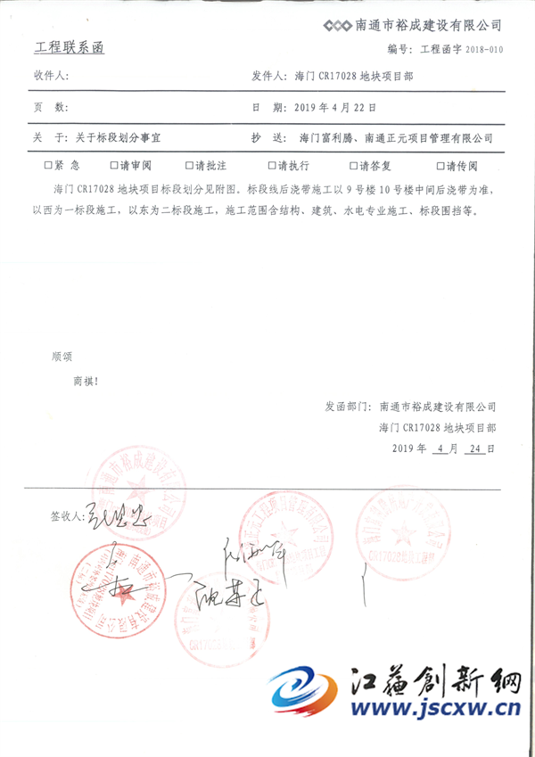 江苏创新网讯 今年7月份,来自江苏昆山的建筑商朱结龙、姚瑞同、钱香泉,联名投诉媒体,反映南通海门瑞富房地产开发有限公司和南通市裕成建设有限公司,在建设海门市长江路东/聚贤路北 CR17028 地块项目总承包二标段工程施工中,恶意串通,否定事实,想赖掉三位投资商5400万余元工程款。媒体披露后,海门区住建局高度重视,专人负责,对朱结龙、姚瑞同、钱香泉三位投资商以及南通海门瑞富房地产开发有限公司和南通市裕成建设有限公司逐一调查,进一步深入了解真实情况,澄清事实,正以积极的态度,采取措施,拿出解决问题的方案和办法。为此,朱结龙、姚瑞同、钱香泉专门致函,对海门区住建局表示深深敬意和感激。