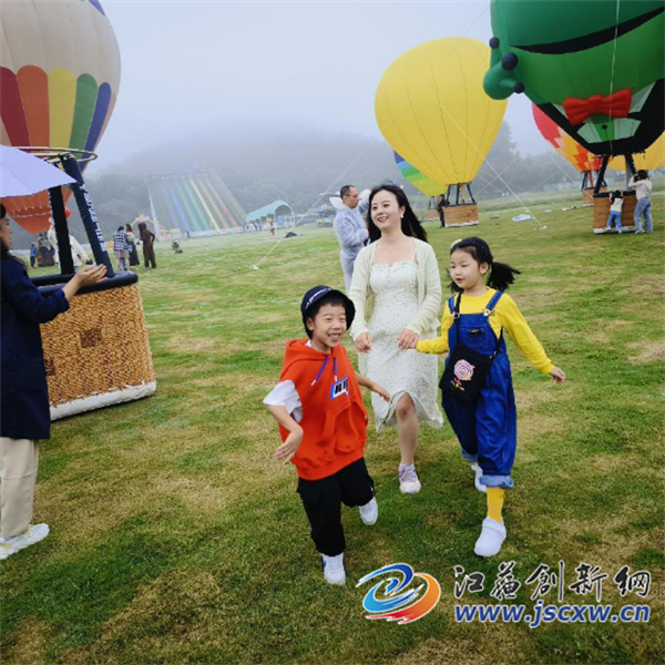 当天,30多只巨型热气球集结大草坪区域,顺利完成了华东首飞,各种动物造型的热气球是本次活动的最大看点之一,斩获了大人孩子们的喜爱,“看到了柴犬、猫咪、小恐龙等动物热气球,我女儿特别喜欢。”南京的赵女士说。