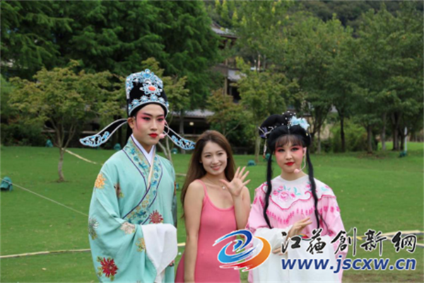 游客与戏曲演员互动打卡