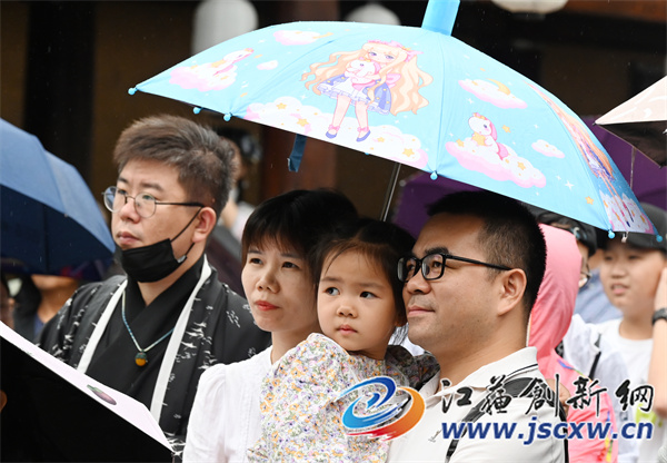雨中看戏的游客