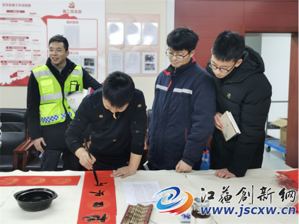 2月1日下午,由句容市书画艺术研究会会长马宏峰率领的书法家队伍走进江苏句容抽水蓄能有限公司,现场挥毫泼墨,倾情写下一幅幅春联、一个个福字,以笔寄意、以字传情,为职工们送上新年祝福。