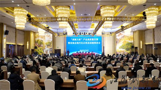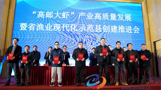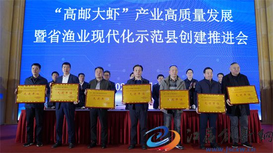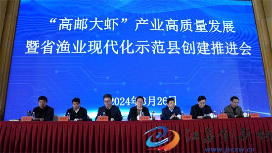 江苏创新网讯(文/翁正倩 图/陈寿康) 26日下午,高邮市召开“高邮大虾”产业高质量发展暨省渔业现代化示范县创建推进会。省渔业协会会长张朝晖,高邮市领导郑志明、潘建奇、张贵龙、张拥军参加会议,副市长赵国祥主持会议。