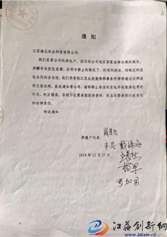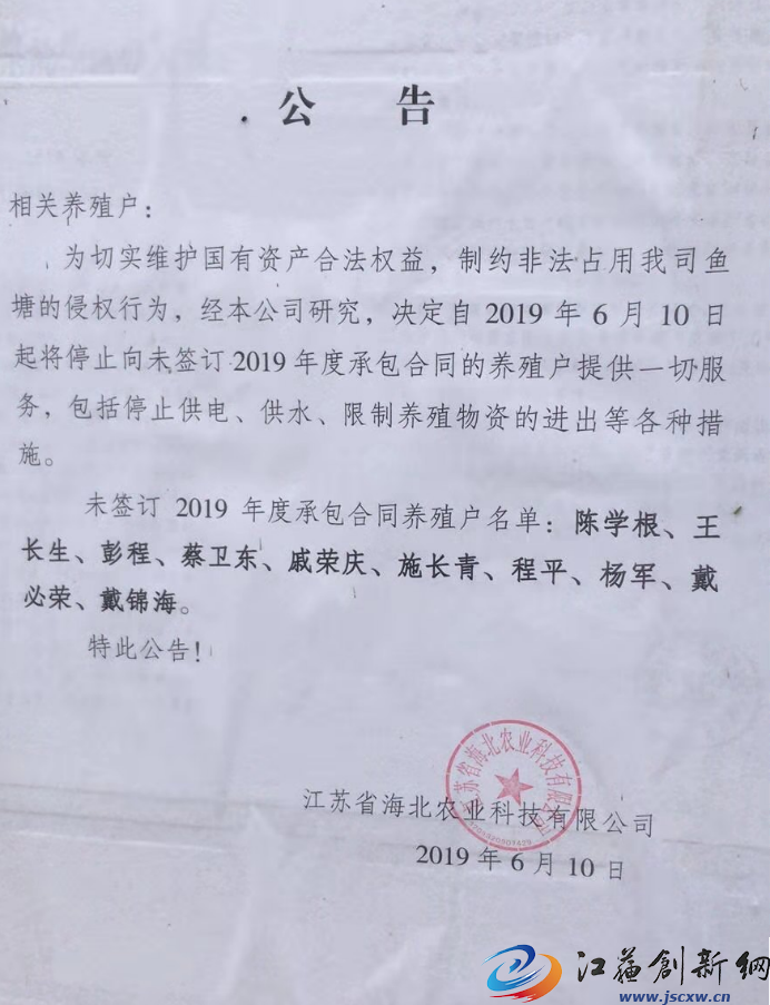 江苏创新网讯 过去数年间,盐城市大丰区海北垦区鱼塘的10位养殖户因与江苏省海北农业科技有限公司(以下简称“海北公司”)渔业承包纠纷而饱受诉累,养殖户们因迟迟未等到公正合理的判决而走上了旷日持久的艰辛维权之路。海北公司违法发包的行为直接导致了养殖户与海北公司签订的《鱼塘养殖承包合同》无效,养殖户们之前付出的成本和心血全部付诸东流,过错方海北公司不仅未对养殖户们的损失赔偿,反而要求养殖户们支付巨额鱼塘占用费,蹊跷的是法院竟全部支持了违法发包方的主张。合同无效导致养殖户们投入的成本血本无归,损失惨重。以养殖户吴红涛为例,近800亩鱼塘经法院执行后仅获得241.2元的养鱼款,但法院却判决其赔偿200多万元逆天“占用费”,其情可悯,其途可悲。