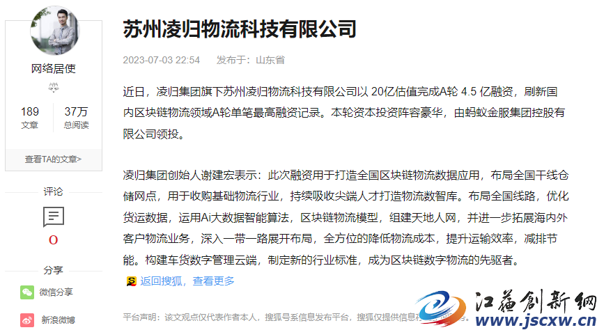 1月末,一则关于「苏州凌归物流科技有限公司」受到中庆投资(深圳)有限公司投资的消息在业内疯传,引起了巨大的热议,小编第一时间与业内相关人士联系后,确认该融资新闻为不实消息。