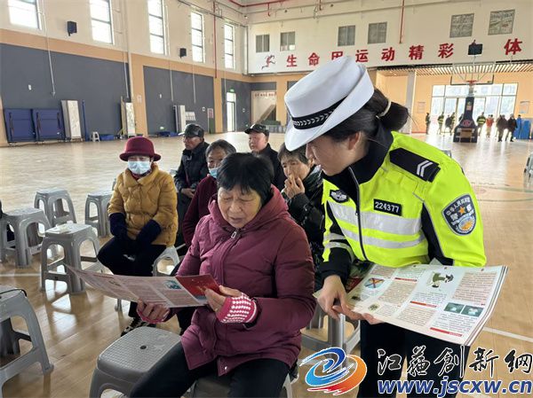 江苏创新网讯 为进一步提升老年群体的交通法律意识安全意识及文明意识,有效预防和减少道路交通事故的发生,2月10日下午,宜兴市交警大队周铁中队民警走进竺西社区雷蒙体育馆,开展交通安全精准宣传行动,全力筑牢道路交通安全防护网,为辖区老年人带来了一场生动的交通安全知识宣讲。