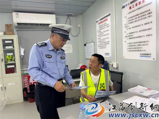 江苏创新网讯 宜兴市华仁建设集团有限公司承接周铁镇彭干村安置房建设任务,为提高工友们建筑施工和日常出行安全意识,27日,宜兴市交警大队周铁中队民警来到建设工地,为工友们普及交通安全知识。