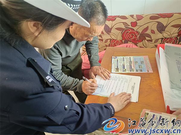 该社区在册居民1786人,其中60岁以上老年人705人。当天的入户宣传教育,社区党总支书记蔣锡琴亲力亲为,全程参与,带领民警来到高龄老人家中,一对一精准对接开展宣传交通安全知识和日常用气用电用水安全知识和注意事项,发放交通安全宣传资料,从老人行走,到骑电动车,一盔一带,乘车出行注意事项,与老人签订了交通安全承诺书。