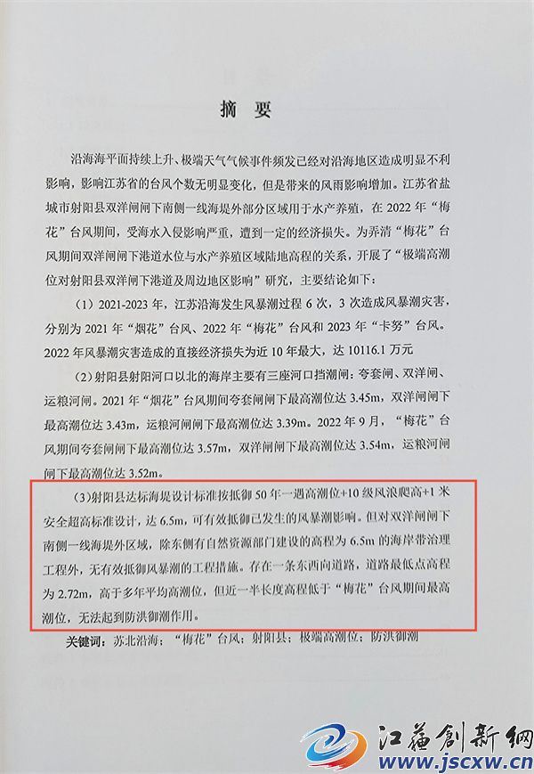 陈立飞又指出,射阳县水利局因不顾防汛抗台大局,纯粹考虑经济效益,贪图蝇头小利,擅自出租港堤给他人经营,擅自破坏防护堤,导致企业深受2021年7月26日“烟花”台风和2022年9月15日“梅花”台风影响,发生不该发生的灾情。