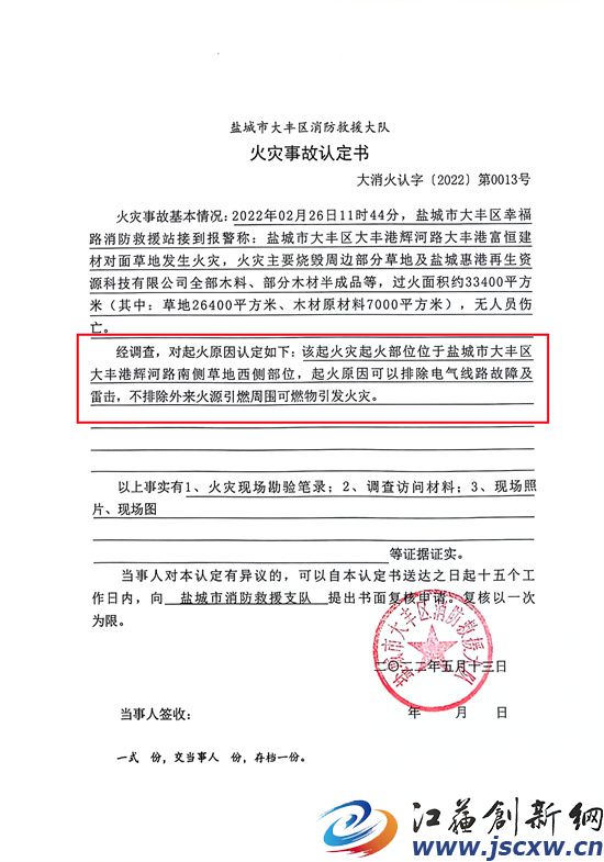 火灾事故认定书