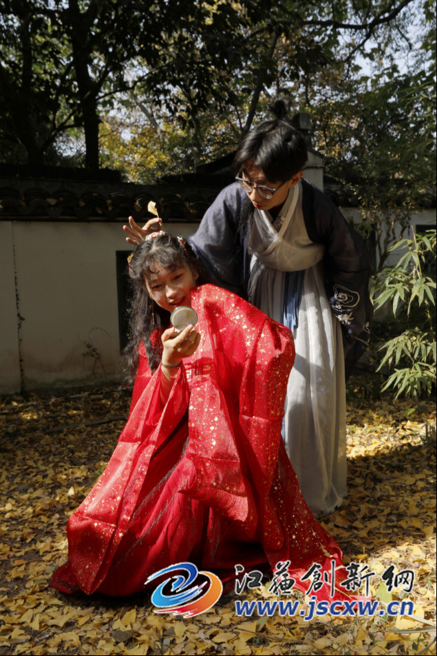江苏创新网讯 2019年11月18日上午,有着600多年历史的南京崇正书院内迎来了江苏城市职业学院行云社的社团伙伴们,他们是前来书院参加银杏文化节汉服摄影活动。