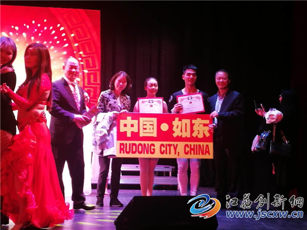 江苏创新网讯 1月4日,文化为媒, 拥抱世界,第四届世界华人春节晚会暨中美艺术节在美国洛杉矶开幕,来自江苏省如东县杂技团的杂技《肩上芭蕾》惊艳全场从20个参演节目中脱颖而出,获得参演节目中的唯一金奖!该节目是国内派出的唯一演出团队!弘扬中国文化,传播中国声音,讲好中国故事,如东杂技勇挑重担!为中国如东点赞。