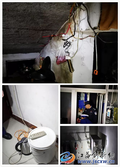 2、出租房内电线私拉乱接,电线未穿阻燃管,使用不合安全的花线拖线板。