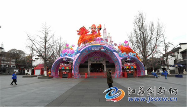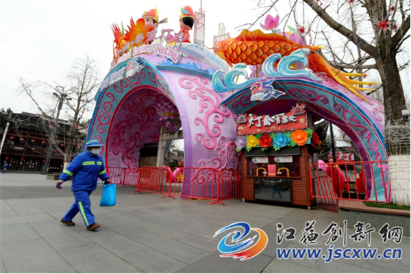 记者进入夫子庙街区后看到,街区内各种高大的灯组林立、彩灯高挂,夫子庙广场、泮池、贡院街以及整个街区内市容市貌十分干净整洁,呈现出一派祥和景象。由于夫子庙文庙、江南贡院、中国科举博物馆、李香君故居等旅游景区,以及众多餐饮、商业门店尚未开放开业,因此游人极少。