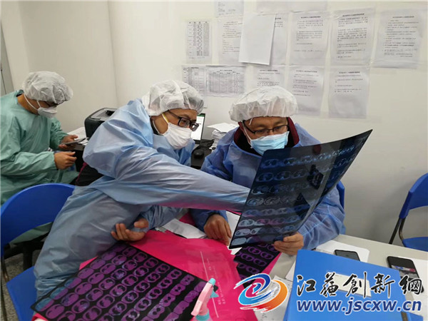 2020年2月4日,作为国家(江苏)紧急医学救援队队员,接到命令后立即奔赴武汉。团队从一无所有参与开辟武汉客厅方舱医院,到转战武汉体育中心主导建设新的方舱医院,累计收治千余名轻症患者。左祥荣主任医师作为医疗队副队不仅负责医疗工作,并且参与一线值班。李金海副主任医师经常进入方舱查房,并亲自为二周没有换药导致后背溃烂的糖尿病患者定时换药,亲自培训采集咽拭子队员。