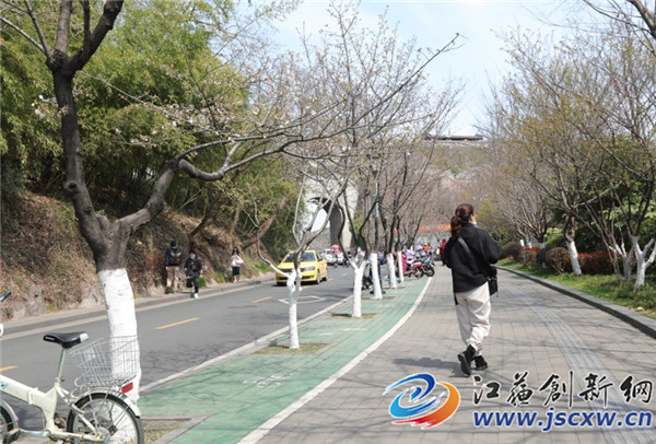 记者询问当地的保洁师傅,该师傅说按照目前的气温,这里樱花绽放的盛花期至少还得再过一周。为此,提醒广大市民和游客们到鸡鸣寺路赏樱花还得再等等。(图文/朱旭先)