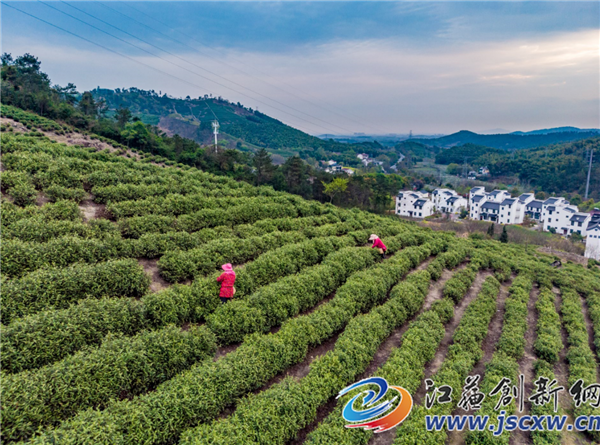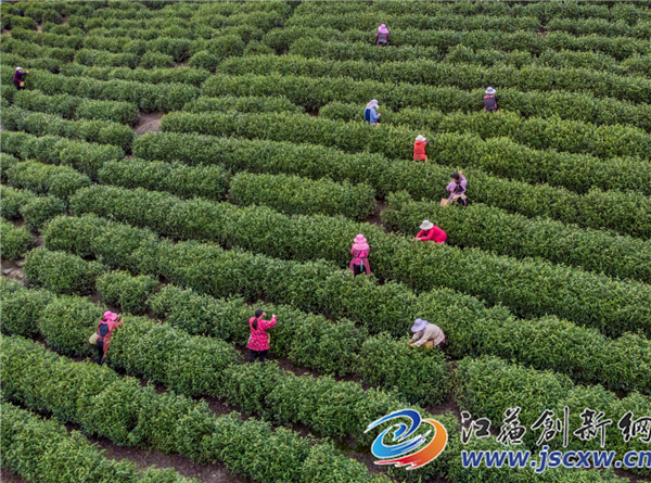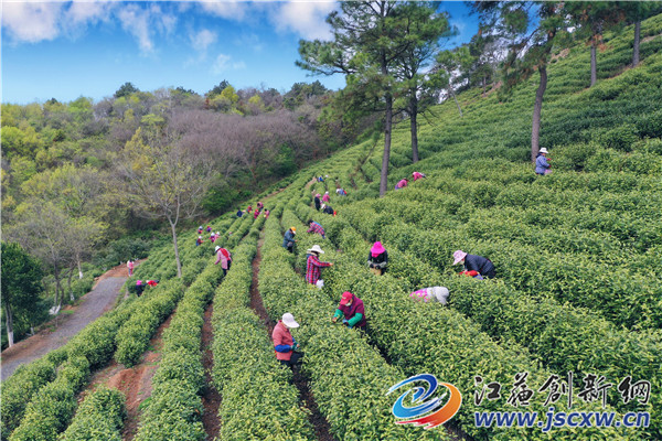 江苏创新网讯 俗话说,“明前茶,贵如金”。连日来,溧阳市天目湖、戴埠、上兴等镇的明前茶采摘已进入黄金时节。山间坡地,到处可见繁忙的采茶景象。茶树青翠欲滴,采茶工人们腰系茶篓,来回穿梭在茶树间,一双双巧手在茶树上飞舞,熟练地采摘鲜嫩的茶芽。