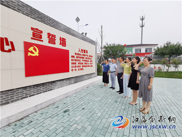白兔镇中心村,地处革命老区茅山脚下。这里有着不一般的红色基因,1938年10月21日,句容市农村第一个中共党支部就建在这里。全体党员沿着“铭记历史,缅怀先烈”红色文化廊道,脚下踏着革命烈士们战斗过的土地,感受战火纷飞的历史场景和先烈们的动人事迹,接受思想政治洗礼,用无坚不摧的红色能量,激励自己守初心、担使命。参观结束之后,在党支部书记刘赛民的带领下,全体党员面对鲜红的党旗举行了庄重的宣誓仪式。