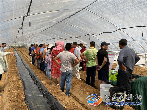 “特别是这些黄叶、老叶、病叶都不需要……在移栽之前土壤要保持湿度……”镇江农科院生态农业研究室主任吉沐祥研究员、镇江市草莓协会会长唐山远及三十多名草莓种植户来到柏生草莓和笪小华家庭农场,镇江市农科院专家吉沐祥现场授课,就草莓生产中的主要问题及对策、生物菌垄施防病虫技术、草莓栽后喷(淋)根处理技术等内容详细讲解。