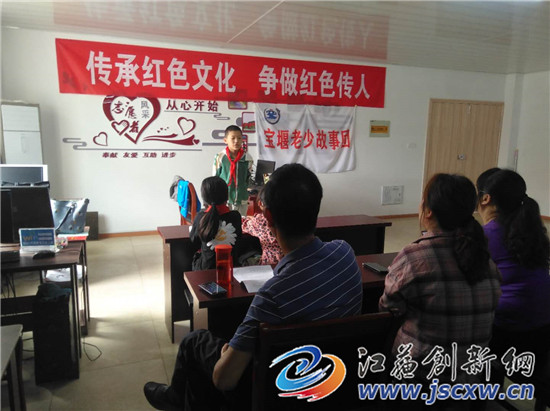 江苏创新网讯 9月23日上午,镇江宝堰文化站二楼图书室,数十名宝堰镇的团员青年正聚精会神地聆听发生在宝堰这块红色土地的数个感人红色故事。