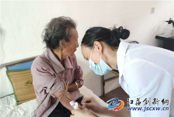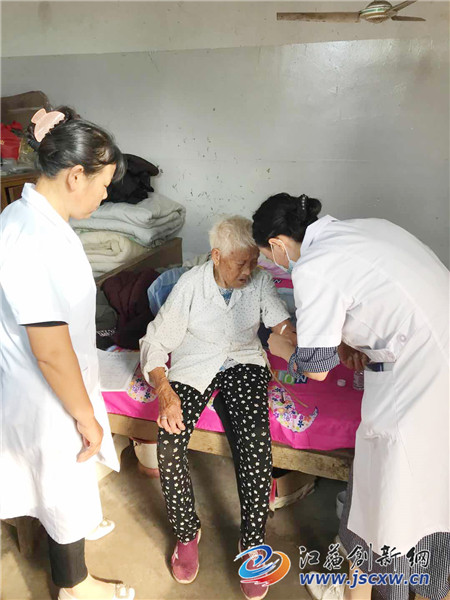 江苏创新网讯 9月25日上午,镇江市丹徒区上会镇上会卫生院的医护人员们来到上会村瘫痪在床的刘老汉家中,为他进行测量血压,B超,心电图等检查。经过一系列的体检,刘老汉除了血压偏高,其他项目基本正常,说起为瘫痪在床的老人上门体检,刘老汉感动万分,他说:“以往生病都是家人七手八脚忙半天才送到医院,今天医护人员们主动上门来义务服务,真是想不到,实在是太感谢了。”