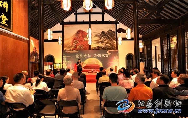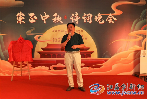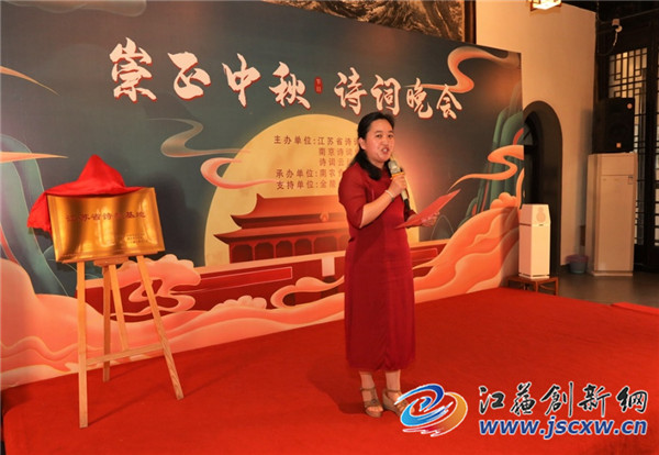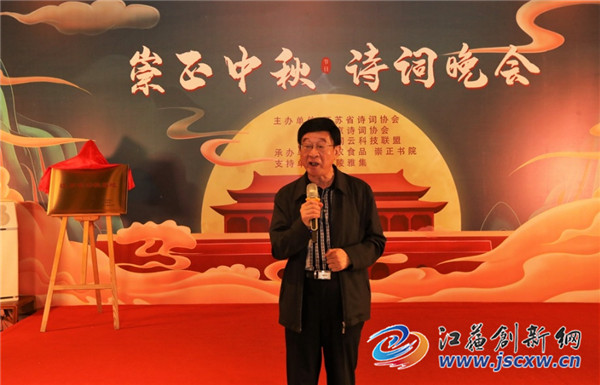 江苏省诗词协会副会长徐崇先代表新落成的江苏省首家诗教基地致辞,并当众赋诗一首:“一院清凉地,万家圆月风;文光耀星灿,崇正看枫红。”